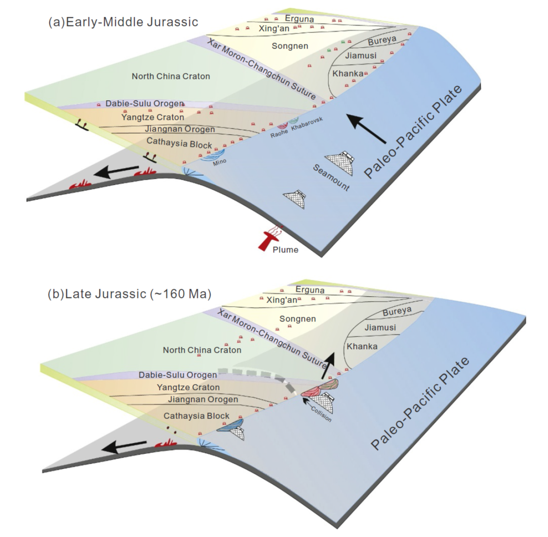 东亚大陆边缘中生代构造演化主要受古太平洋板块俯冲作用影响这一认识几乎得到了共识。然而,古太平洋板块在欧亚大陆下的俯冲历史一直存在争论,尤其是由于东北亚陆缘晚侏罗世-早白垩世早期岩浆活动的缺乏,致使东北亚大陆边缘晚侏罗世-早白垩世构造属性的认识存在较大争论。