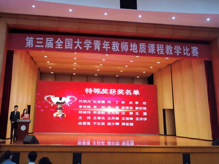 2021年5月15日至16日,由中国地质学会主办,中国地质学会地质教育研究分会、河南理工大学承办的第三届全国大学青年教师地质课程教学比赛在河南理工大学举行。公司参赛教师梁琛岳副教授和王春光副教授表现优异,荣获特等奖。经理单玄龙教授应邀出席大赛闭幕式,为获奖选手颁奖。365英国上市公司荣获“优秀组织奖”。