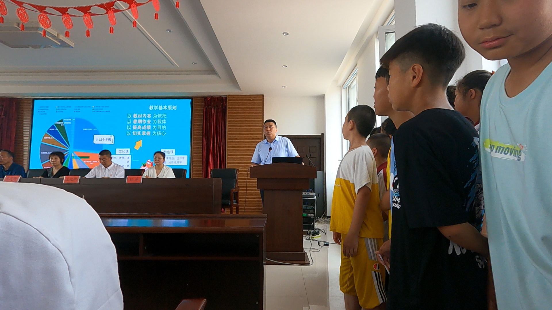 李阳副书记向全体员工和家长介绍了育苗支教的发展历史、团队组成和工作模式。他表示,育苗支教团有着优良的传统、优秀的志愿者、优质的培训方案,此次支教定会给员工及家长交出一份令人满意的答卷。他希望,未来与边昭镇能够长期合作,支教团将秉承“担负责任,专注支教;多方联合,凝聚力量”的核心理念,发扬“解惑传爱,育人树己;播种希望,放飞梦想”的育苗精神服务边昭镇公益事业,为边昭镇青少年教育注入新鲜血液。育苗支教团通榆队长杨贺然同学就队伍组成、课程介绍等方面做了详细介绍,参会家长对整体教学安排高度认可,打消了对支教团队专业性和系统性的质疑。