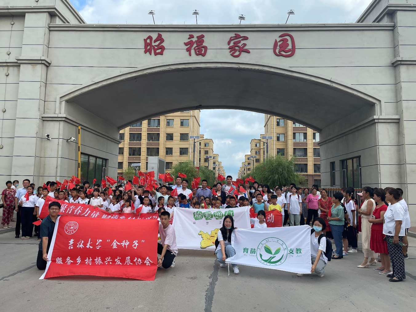 仪式开始前,300余名家长及员工举行了热烈的欢迎仪式,欢迎支教团成员入驻边昭镇开展为期15天的暑期支教活动。