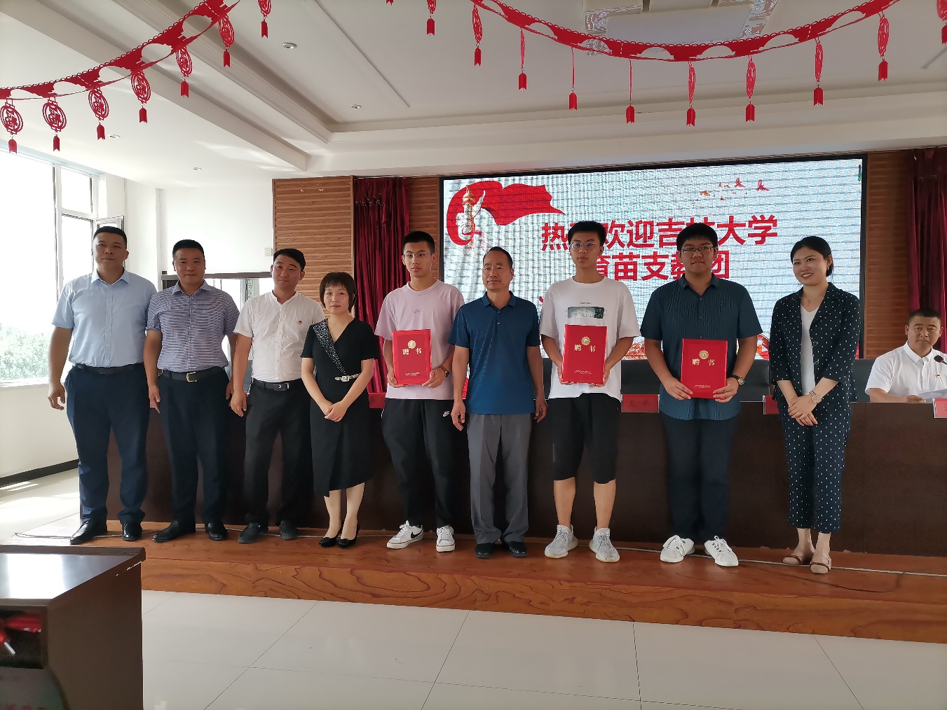 仪式上,张刚副主席、王丰书记和焦文倩镇长为今年暑期驻村助理代表颁发了聘书。温卓副书记、李阳副书记与边昭镇书记、镇长进行了“365英国上市公司‘金种子’服务乡村振兴发展协会社会实践基地”和“365英国上市公司社会实践基地”授牌仪式。未来双方将以基地为平台,在乡村振兴方面深入开展各类活动。