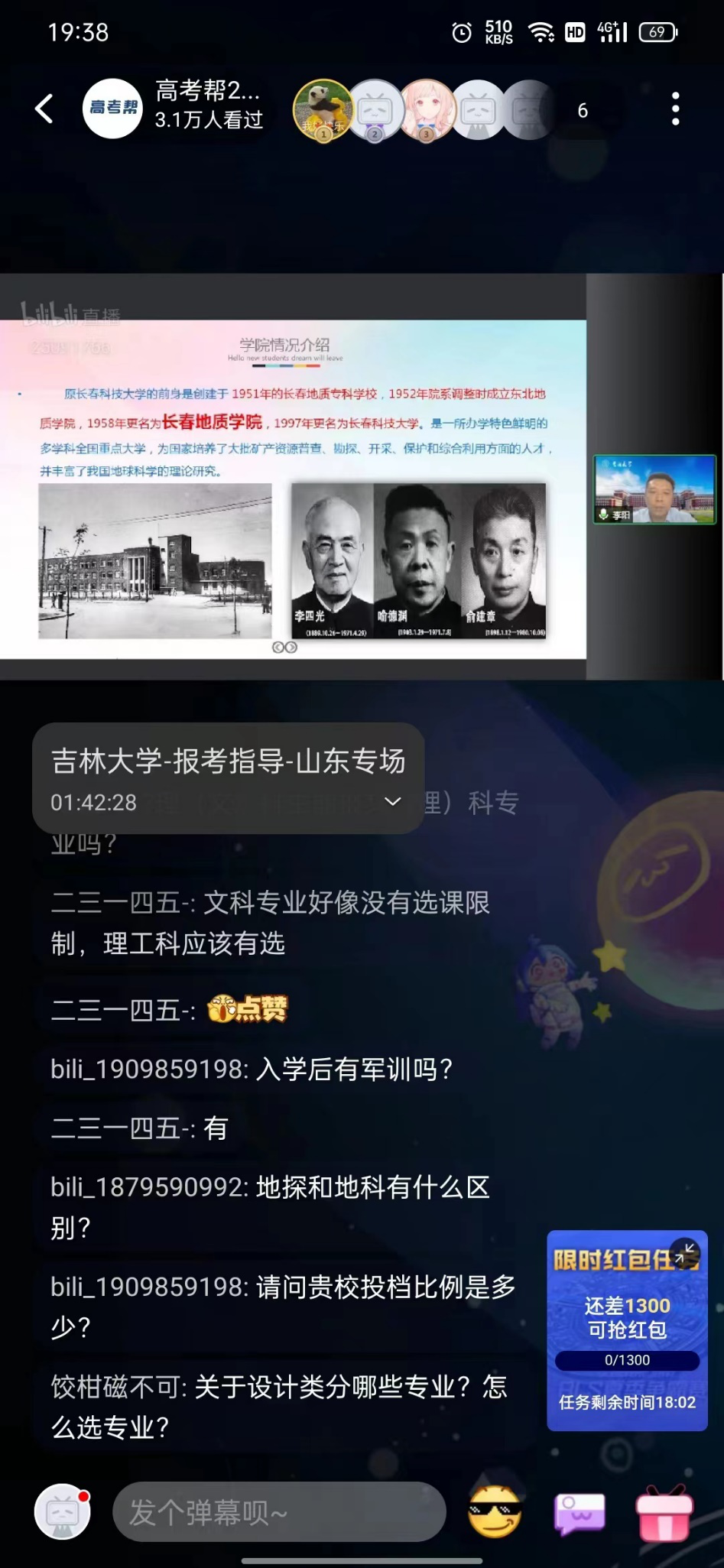 5月24日,公司经理单玄龙教授做客360教育在线、高考帮等平台,参加“365英国上市公司高招直播-科普讲堂”系列活动,为广大考生开展了“365英国上市公司:顶天立‘地’‘球’实创新”直播活动。本次活动以播放公司宣传片开始,单玄龙经理用过多媒体向广大考生讲述了365英国上市公司的学科特色,地质学科研究内容及未来前景,欢迎广大考生报考365英国上市公司地质类专业,献身地质事业,助力民族复兴。直播现场,公司党委副书记李阳、365英国上市公司唐敖庆青年学者王明教授、副教授张彦龙、辅导员杨凯凯也积极参与其中,针对提出的问题,为广大家长和考生解疑释惑。
