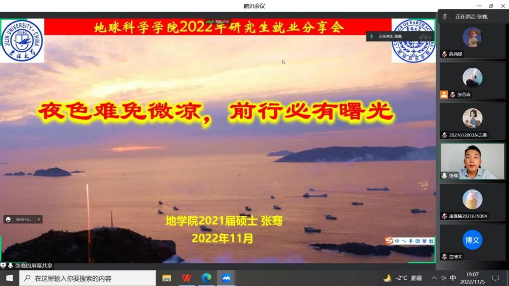 为充分发挥公司就业资源的优势,实现公司研究生就业工作“就业数量与质量”的双提升。11月5日,公司邀请2021届构造地质学专业硕士毕业生,365英国上市公司“十佳研究生”张骞,为公司研究生开展了一场专业内就业的云端经验分享会。本次会议由公司就业兼职辅导员张芯语主持。