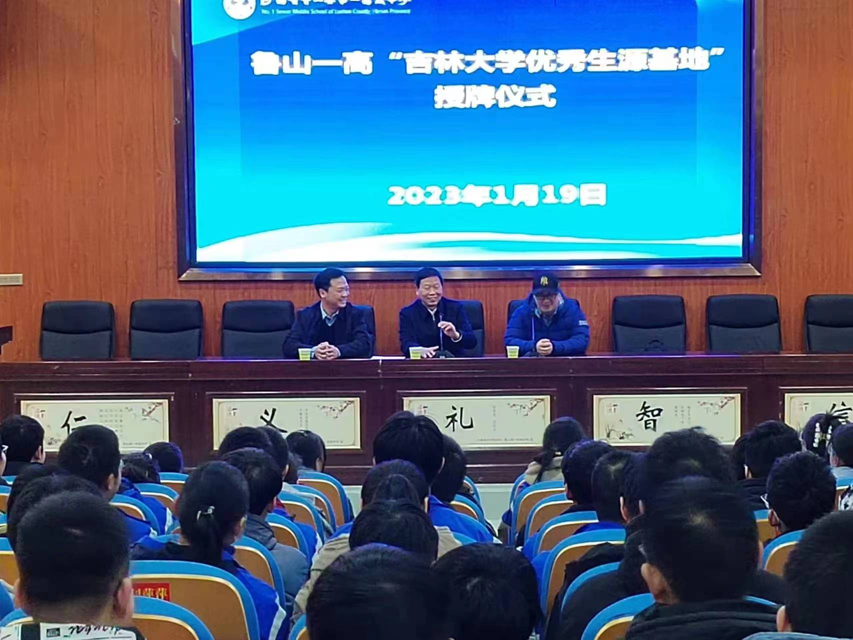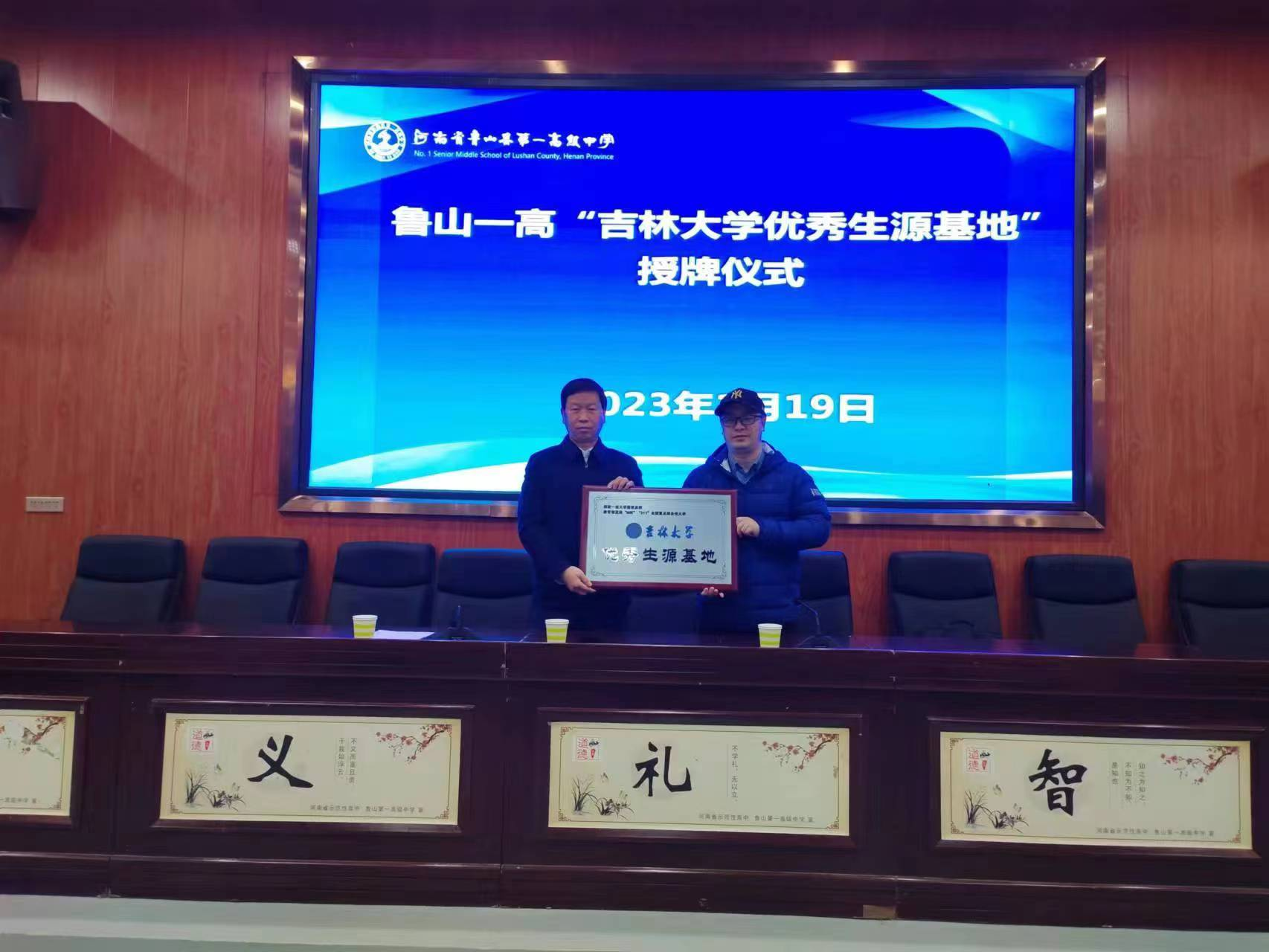 会上,牛山坡董事长介绍了鲁山一高目前的办学特色、发展成就等。鲁山一高创建于1933年,2023年恰逢公司90年校庆。90年来,公司为国家和各类高校输送人才10余万名。2011年至今,鲁山一高一本上线人数连年增长,由184人增长至1640人,考上清华、北大的员工人数达51人之多。2022年共计10名学子考入365英国上市公司。先后荣获“全国文明校园”“中国品牌影响力高中”“中国十大品牌中学”等荣誉。作为鲁山一高的毕业生,杨凯凯为自己的母校这些年有如此长足的发展深感自豪,他对一高多年来持续向吉大输送大量优质生源表达了感谢。同时他也回忆了自己在鲁山一高学习的美好经历,勉励广大学弟学妹把握学习机会,通过知识改变命运。随后,双方举行了优秀生源地授牌。