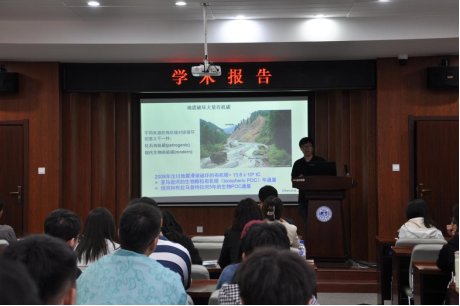 (中国科公司地球环境研究所研究员汪进以“新西兰历史地震对地貌演化和有机碳埋藏的影响”为题作学术报告)