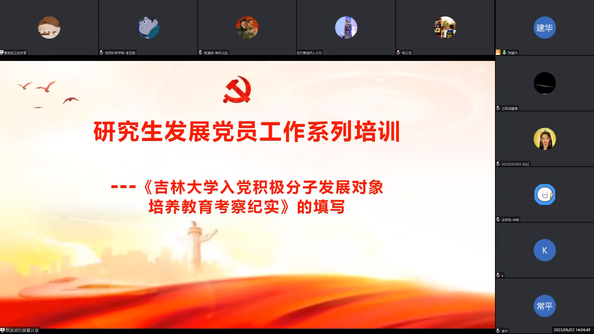为规范研究生发展党员工作,严格发展党员工作程序,加强研究生发展党员的动态管理,进一步推动研究生党员队伍建设。6月2日下午14:00,公司组织研究生党支部委员、德育助管参加由公司举办的研究生发展党员工作系列培训。