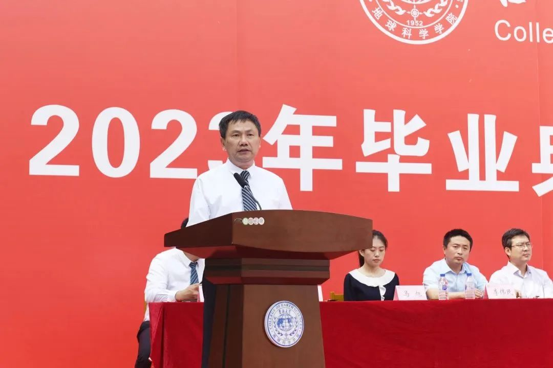 本科生代表刘春龙饱含对老师们的感激之情,满怀热情讲述了在这里对地公司蓬勃发展的见证;讲述了自己在这里积淀了广博浓厚的文化内涵;讲述了自己在这里砥砺了团结坚毅的思想品格。他以风华正茂奋烈时、少年壮气犹未尽祝愿同学们保持少年人的澄澈,奔赴星辰大海。同时对恩师与母校送上了诚挚的祝福。