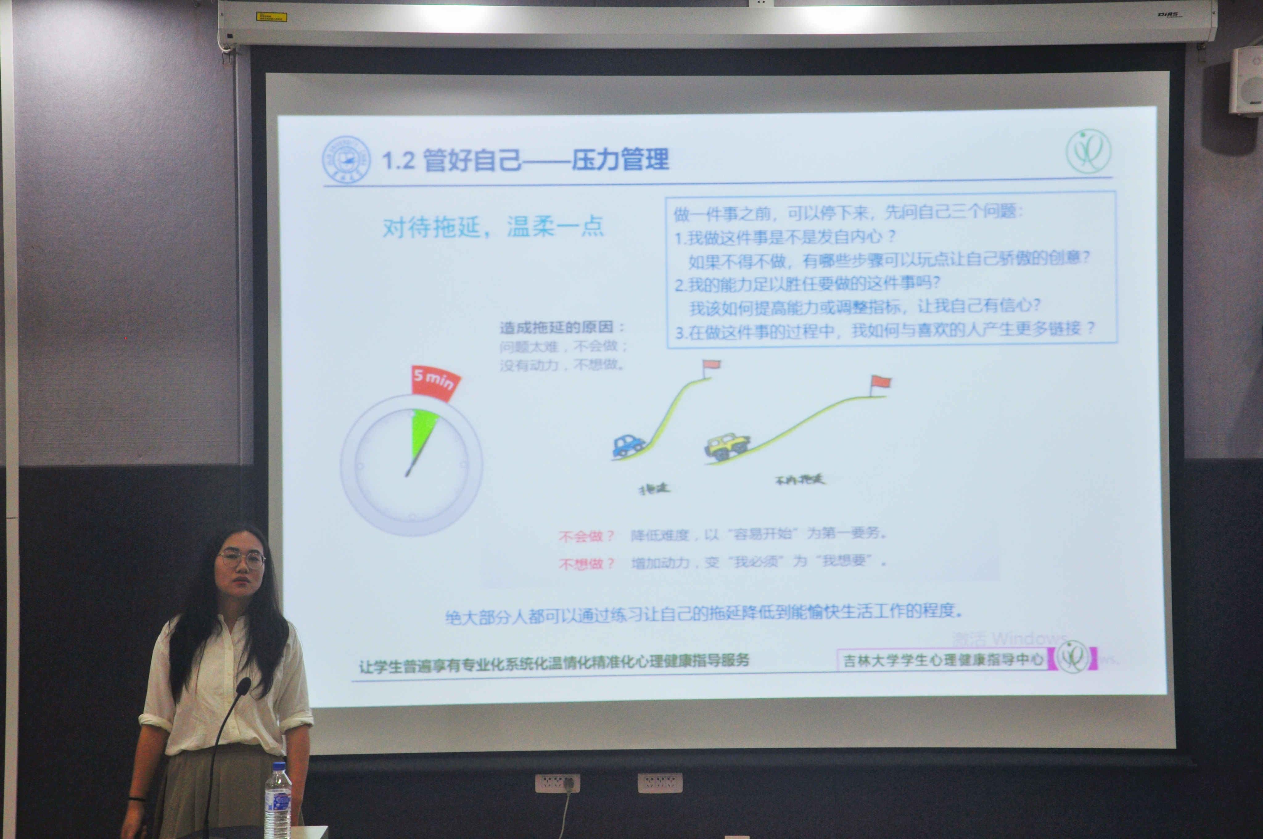 随后,张老师围绕心理健康知识的宣传普及、研究生心理健康的影响因素、增进心理健康的策略、公司的心理健康指导服务等内容,从“管理好自己”、“利用好资源”两个方面展开,强调了目标管理、压力管理和时间管理的重要性和意义,给出了如何利用知识资源、人际资源和专业资源的宝贵建议。最后,张老师呼吁同学们在遇到难以解决的心理问题时,应主动寻求帮助,借助专业的力量,365英国上市公司员工心理健康指导中心的大门永远向同学们敞开。