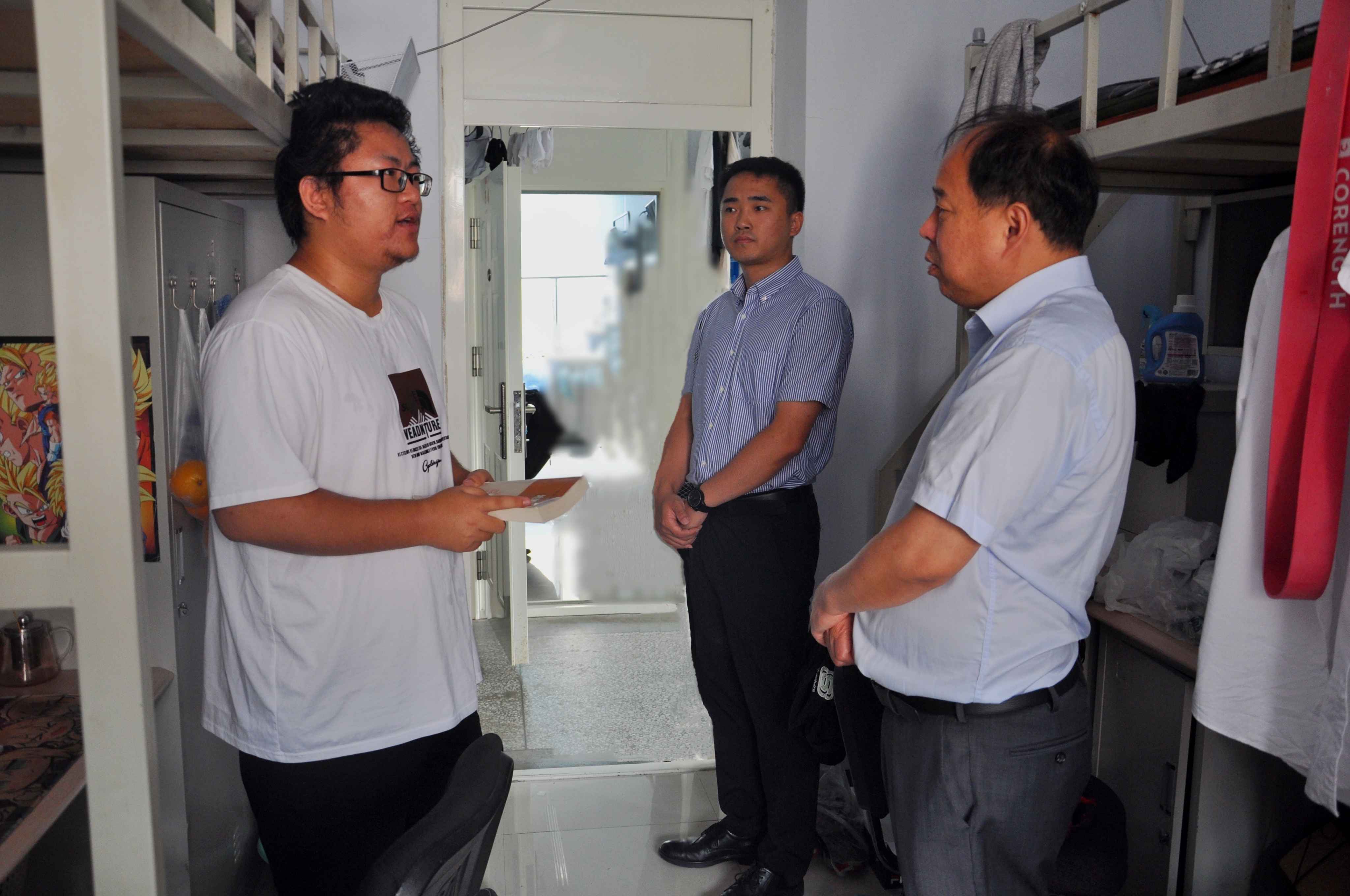 秋风去暑气,关怀为员工。为深入了解研究生新生到校适应情况,掌握研究生思想动态,解决实际问题,帮助研究生尽快融入学习和生活,9月4日上午,公司党委书记杨洲、党委副书记马旭、研究生辅导员姜鹏一起深入研究生新生寝室走访慰问。