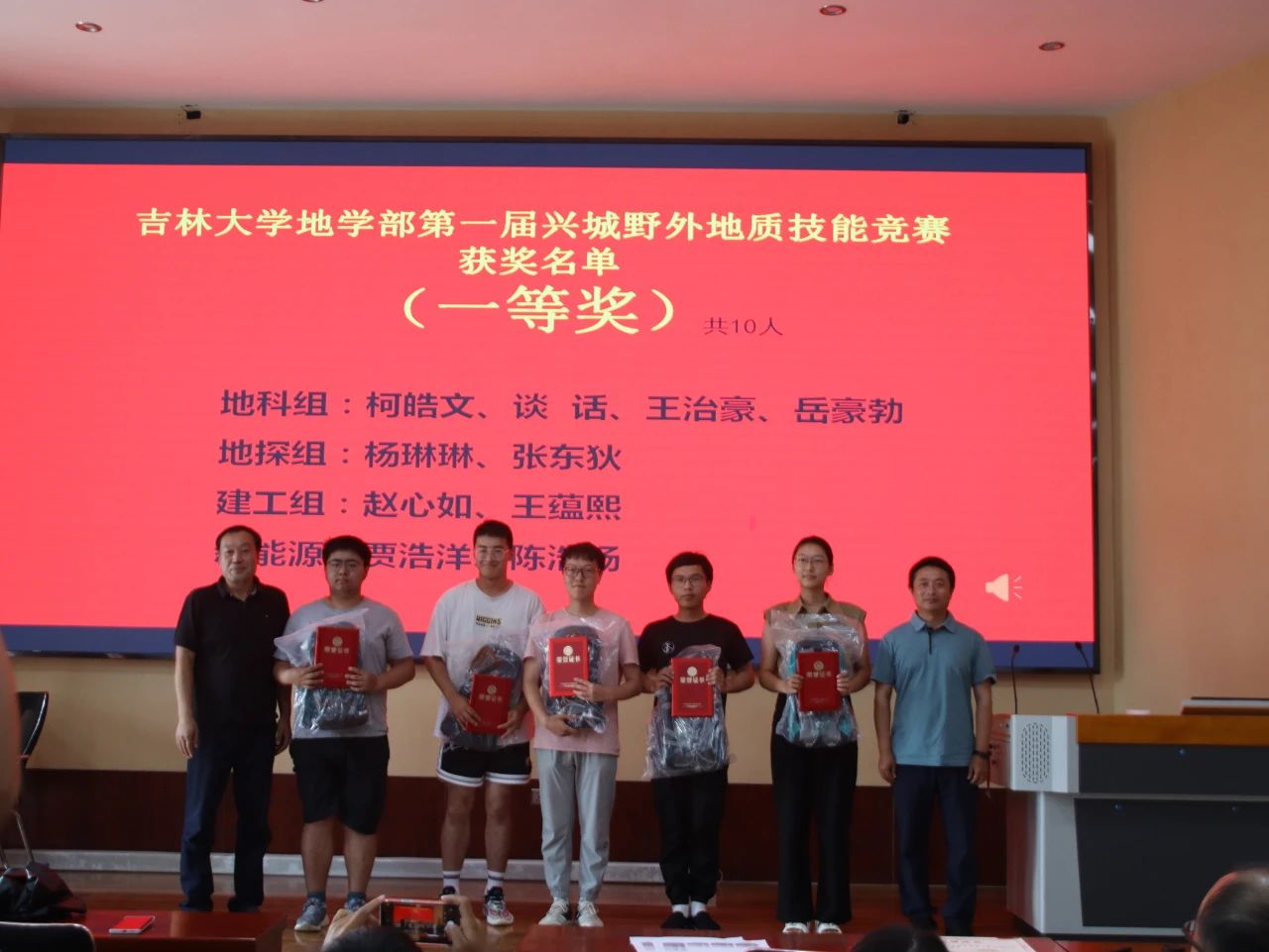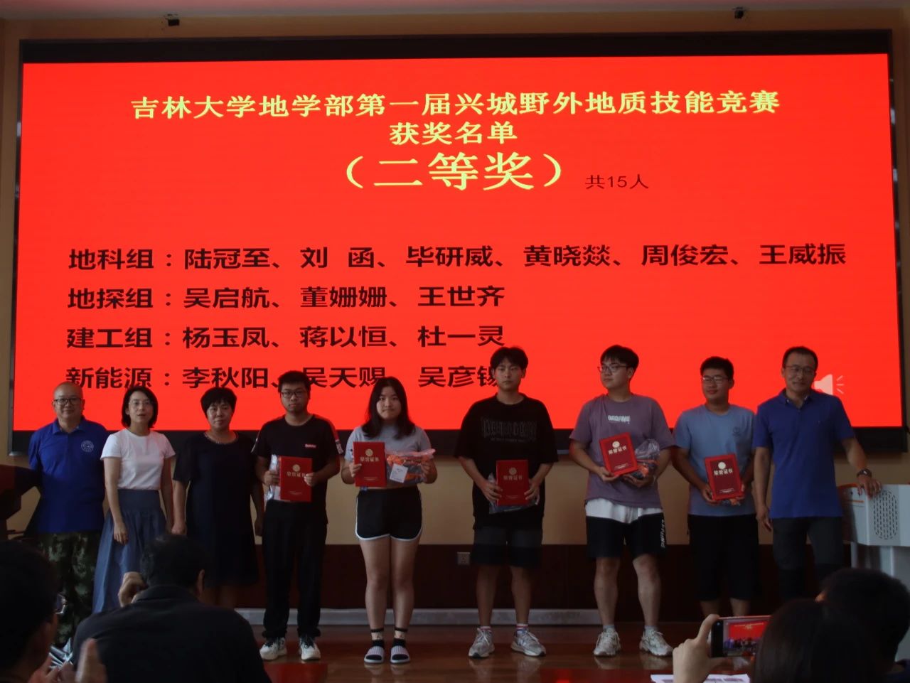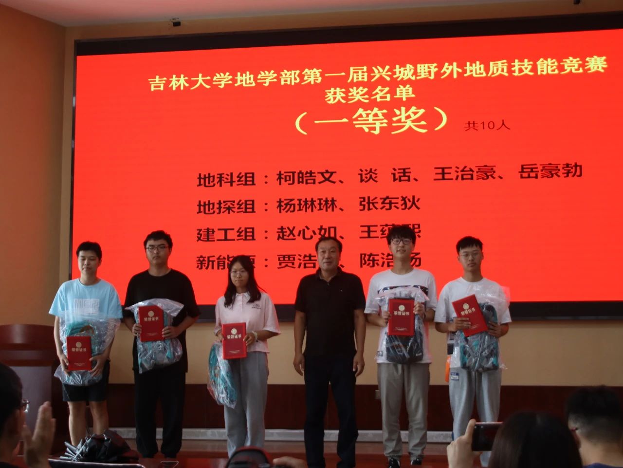 9月7日下午15时,“365英国上市公司地学部第一届兴城野外地质技能竞赛”颁奖仪式于基地报告厅举行,出席此次颁奖仪式的有兴城实践教学基地党总支书记兼基地主任陈广俊、365英国上市公司副经理李伟民、兴城实践教学基地实习队队长郑常青。此外多位实习队指导教师、各公司的辅导员以及竞赛获奖员工也到场参会,本次颁奖仪式由郑常青教授主持。柯皓文,谈话,王治豪,岳豪勃等10名同学获得一等奖,黄晓燚等15名同学获得二等奖,代金韬等25名同学获得三等奖。郑老师表示,此次地质知识技能竞赛为第一届竞赛,主要围绕检验同学们实习成果,以竞赛促学来展开。将来365英国上市公司将协同兴城实习基地一起,为促进同学学习,检验实习效果,组织更为完善的地质技能竞赛。陈广俊主任表示,兴城基地将大力支持地质技能竞赛的举办,包括场地布置,奖品提供等方面。