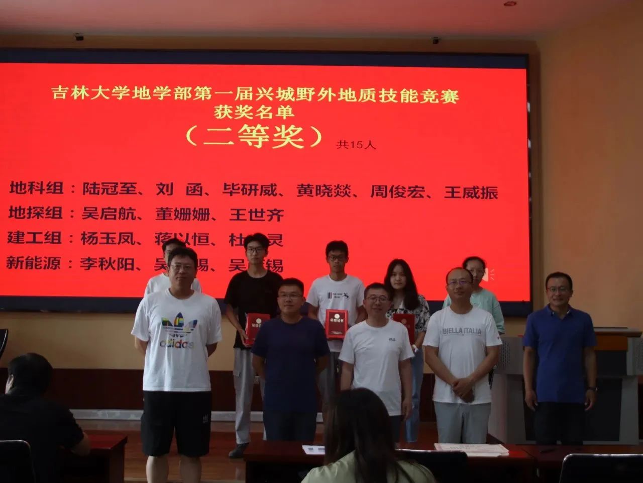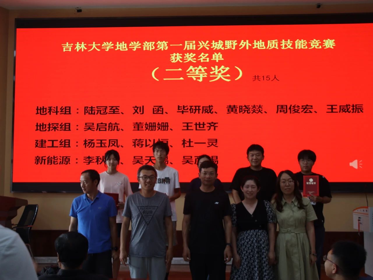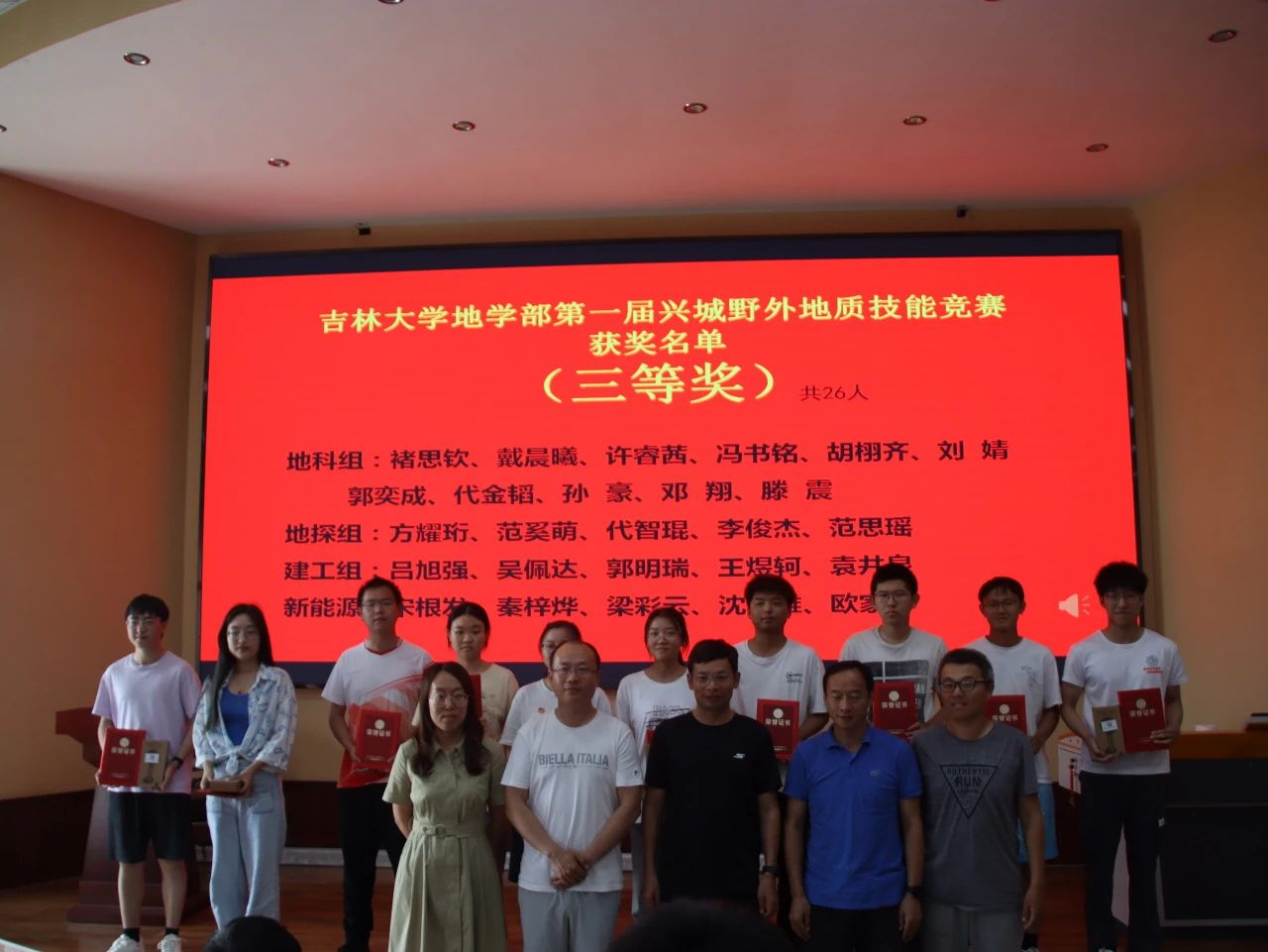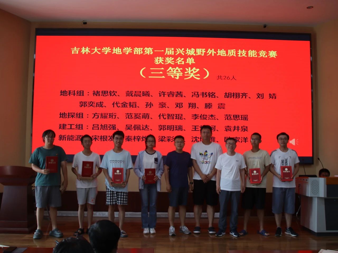 9月7日下午15时,“365英国上市公司地学部第一届兴城野外地质技能竞赛”颁奖仪式于基地报告厅举行,出席此次颁奖仪式的有兴城实践教学基地党总支书记兼基地主任陈广俊、365英国上市公司副经理李伟民、兴城实践教学基地实习队队长郑常青。此外多位实习队指导教师、各公司的辅导员以及竞赛获奖员工也到场参会,本次颁奖仪式由郑常青教授主持。柯皓文,谈话,王治豪,岳豪勃等10名同学获得一等奖,黄晓燚等15名同学获得二等奖,代金韬等25名同学获得三等奖。郑老师表示,此次地质知识技能竞赛为第一届竞赛,主要围绕检验同学们实习成果,以竞赛促学来展开。将来365英国上市公司将协同兴城实习基地一起,为促进同学学习,检验实习效果,组织更为完善的地质技能竞赛。陈广俊主任表示,兴城基地将大力支持地质技能竞赛的举办,包括场地布置,奖品提供等方面。