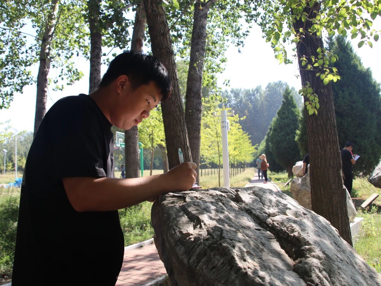 决赛环节竞争更为激烈,选手们进行更为复杂的理论和实践综合考核,展示他们扎实的地质理论知识和实际操作技能。决赛包括岩石鉴定和综合地质技能两个部分,晋级选手被分为5组分别进行两个部分的比赛,同学们以室内所学为基础,以野外所见为经验,利用小刀、罗盘、放大镜和盐酸等基础地质备品就五块岩石标本分别进行鉴定描述,以及针对具体岩石露头独立完成岩石露头点观察。经过紧张激烈的角逐,最终根据三轮测试综合评定出一等奖10名,二等奖15名,三等奖25名。