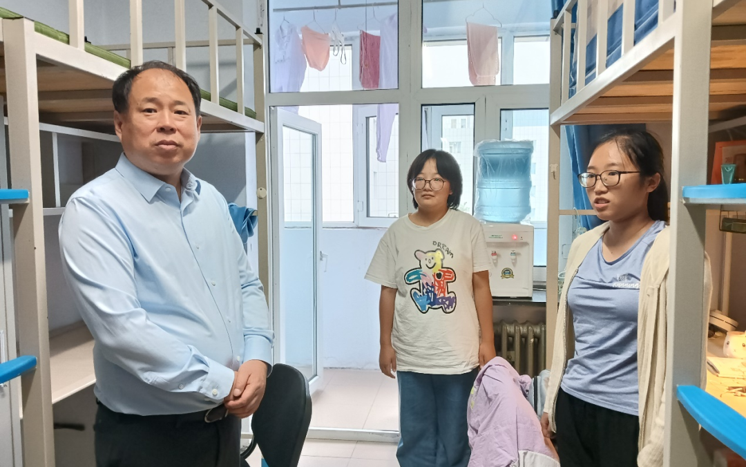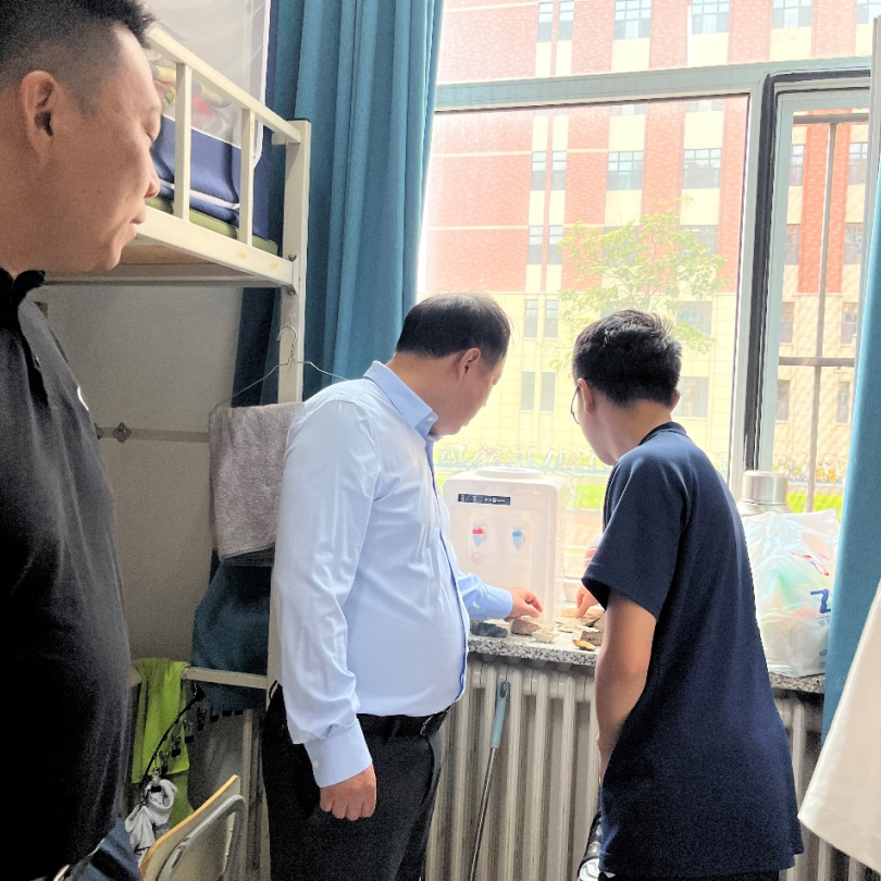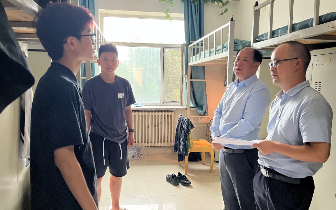 在北苑一公寓6096寝室,得知新生来自山东、甘肃、新疆、重庆等不同省份时,杨洲书记询问了大家的来校交通方式、父母是否陪同、是否适应东北的气候和饮食等。同学们纷纷谈了自身感受,杨洲书记分享了自己的老员工活经验,鼓励大家尽快适应东北生活,充分锻炼自己,提高自主生活意识,加强沟通,建立良好的人际关系,努力营造和谐稳定的寝室氛围。在6137寝室,当听到新生家庭遭遇洪涝灾害导致农作物被淹时,杨洲书记详细询问了员工家庭的受灾情况,了解了员工当前学习生活状况。李阳副书记介绍了公司对受灾员工采取的关怀相关举措。杨洲书记鼓励员工以积极的心态正视家庭遇到的困难,学会在逆境中成长,努力学习、自立自强,以坚定的信念、踏实的行动、丰富的知识改变命运。
