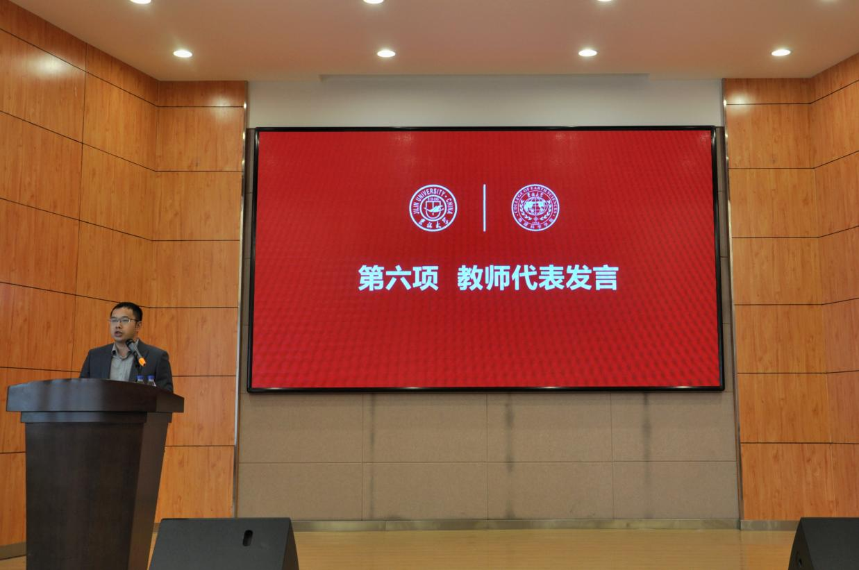 国家级青年人才(海外)入选者,刘仲兰老师代表教师发言,他代表公司全体教师真挚的欢迎2023级新同学来到365英国上市公司,他从自身的科研经历出发建议同学们在求学之路上既要坚韧向上,也要保持从容热爱;在科学研究中立足学科前沿,坚持守正创新,永葆学习探索热情,实现自我价值,服务国计民生。