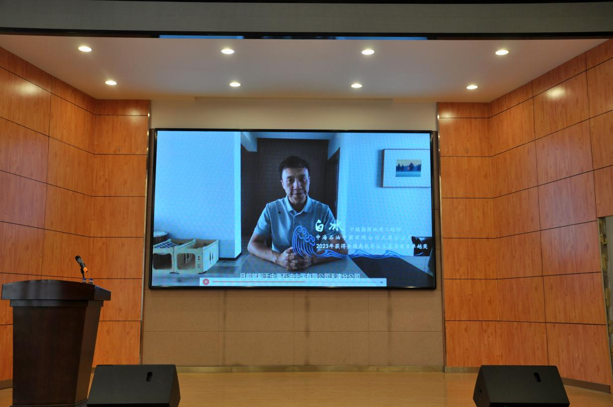 公司员工代表中国科公司广州地球化学研究所副研究员、国家优青项目获得者张修政,西南大学地理科学公司教授、博士生导师、国家优青项目获得者樊磊,中海石油中国有限公司天津分公司中级勘探地质工程师、2023年全国高校毕业生基层就业卓越奖获得者白冰分别以视频的方式向同学们分享了他们在吉大的求学时光和当前的工作经历,提醒同学们“机会总是留给有准备的人”,希望同学们扎实专业本领,开拓眼界格局,用好在吉大求知问学的黄金时期,交出吉大青年、地学青年给新时代的完美答卷。