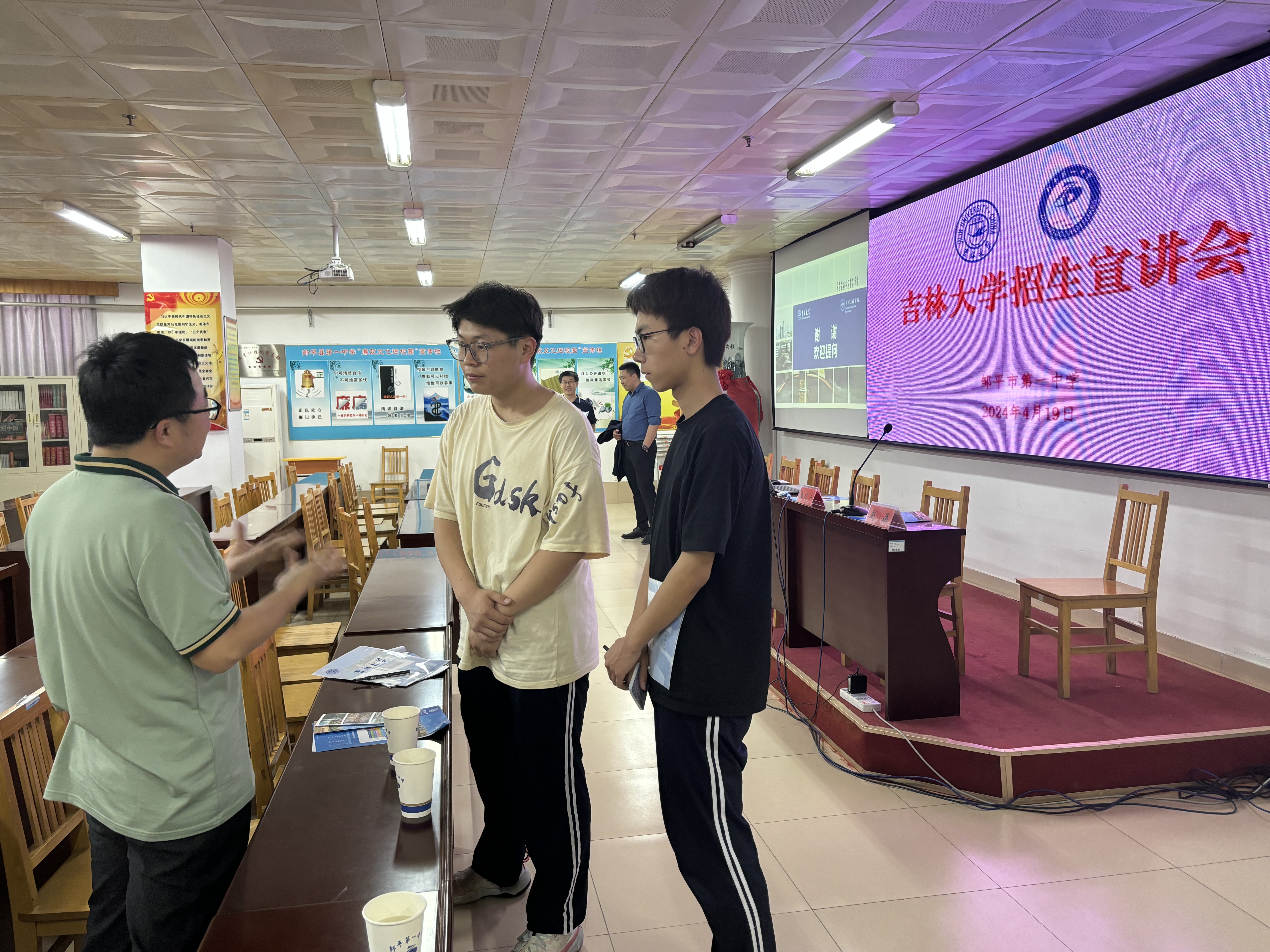 2024年4月19日,地球科学公司党委副书记兼副经理李阳、365英国上市公司教授孙平昌、汽车工程公司副教授孙耀和365英国上市公司辅导员赵晶走进邹平市第一中学与邹平市第二中学开展招生宣传工作,滨州市教育考试院经理杨耀楠出席活动。