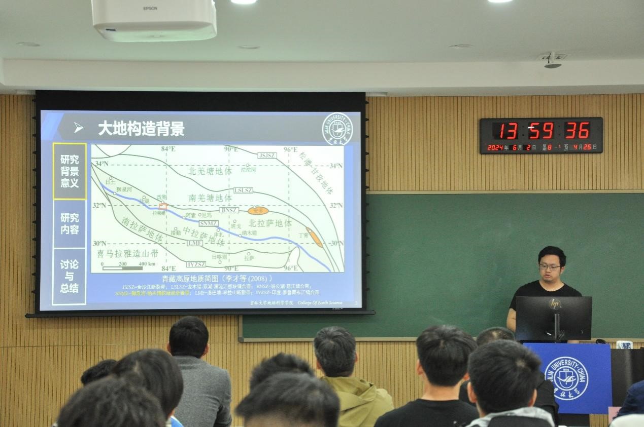 活动上,14位主讲人依次分享了自己的研究。分享的内容立足于特定地质时期和区域的地质活动和构造演化,既有以青藏高原的不同地区为研究区域,探讨不同地质时期的岩浆活动及其对板块构造的影响,分析地壳减薄事件;也有以佳木斯地块和海南岛为研究区,分析不同地质时期的构造演化;还有部分同学立足于地质活动造成的影响和化学测试技术的应用,分析研究板块构造的动态过程,研究岩浆活动对地质结构的影响等。