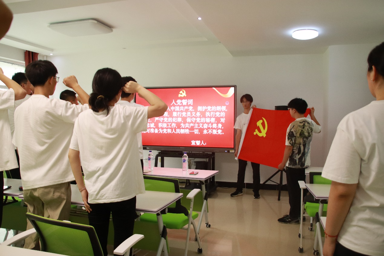 党支部副书记赵晶带领兴城员工临时党支部35名党员重温入党誓词。同学们全体起立,精神饱满,声音洪亮。通过重温入党誓词,同学们更加深刻的理解了自己的责任和使命,相信在实际行动中将更好地践行党的宗旨和原则。