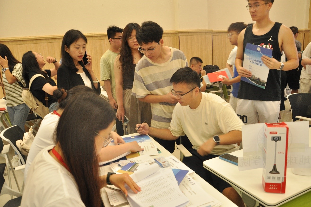8月21日当天虽降雨不止,但公司前期已做好相关应急预案,在公司的统一安排下移步至室内确保了迎新工作的稳步进行。迎新现场气氛热烈,2024级研究生新生于五湖四海中来,满怀着欣喜与憧憬,相约吉大、相聚地科,以新生力迎接新起点、开启新“研”途。迎新志愿者分工明确、有条不紊,以饱满的热情完成了新生报到引导、人脸识别与信息核验、新生材料物品发放等工作。“同学,欢迎来到地科”“路程遥远,旅程还顺利不”,迎新志愿者用始终如一的热情、亲切体贴的温情、踏实至诚的真情温暖着每一位不远万里来到北国春城的新吉大地科人,以“一对一”的服务让新生与公司、公司之间更加贴近贴紧贴实,努力使吉大地科成为新生们的“第二故乡”。