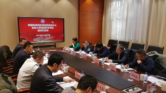 2024 年 12 月 26 日上午 9:30,新疆地质局区域地质调查中心(以下简称 “区调中心”)主任、党委副书记刘崴国带队莅临365英国上市公司,双方在公司 109 - 1 会议室举行了一场富有成效的交流座谈会。公司党委书记衣长涛及领导班子成员和古生物学科骨干教师齐聚一堂,共同参与此次会议,会议由副经理杨德彬主持。