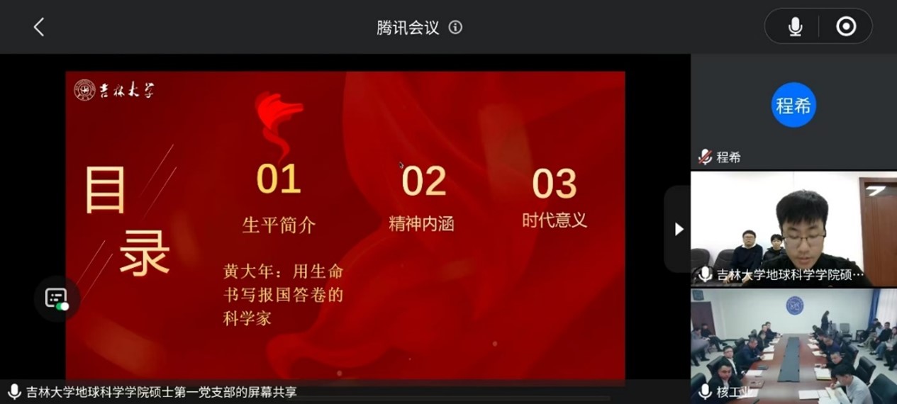 随后进行了精神文化学习。哈尔滨工业大学航天公司空间光学工程研究生第二党支部支部委员卢寅玺同志为大家分享了马祖光精神,吉林省核工业地质局生产支部书记柴东同志分享了地质“三光荣 四特别”精神,365英国上市公司硕士员工第一党支部书记吕勃燃同志分享了黄大年精神。