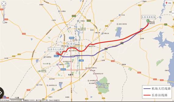 图4长春龙嘉国际机场与华天酒店交通位置图