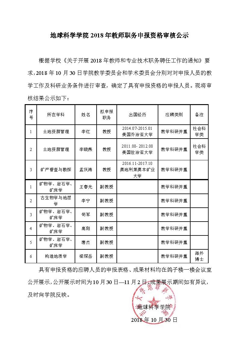 2018年教师职务申报资格审核公示