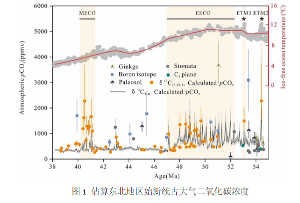 进展1—定量恢复了东北地区始新世和新疆地区早侏罗世古大气CO2浓度