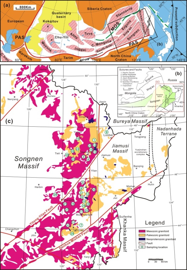 图1 松嫩地块和佳木斯地块花岗岩样品来源分布