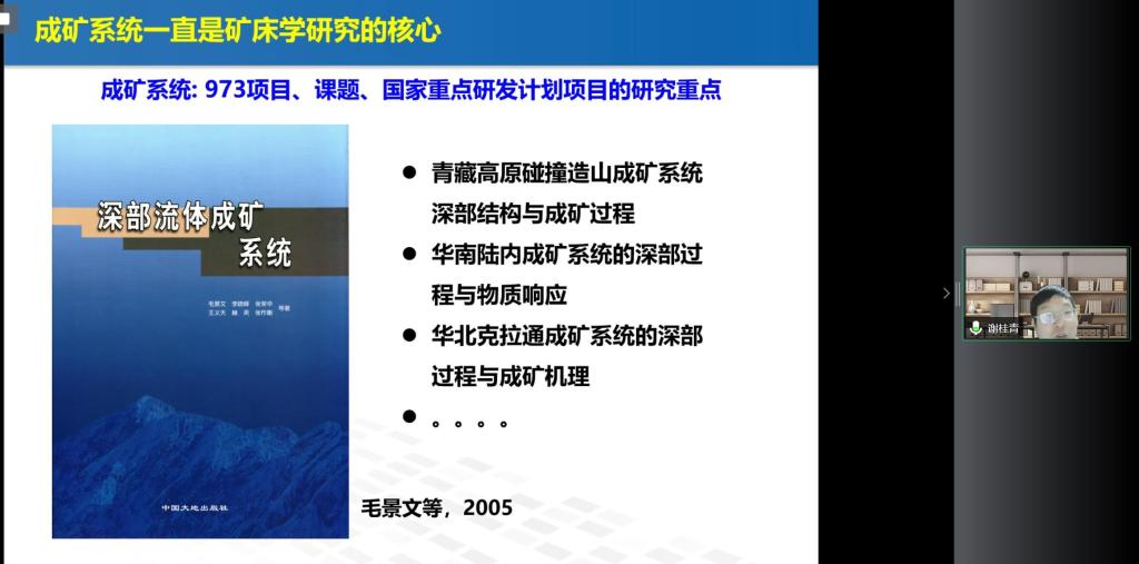 本次报告邀请到中国地质大学(北京)二级教授、中国地质科公司矿产资源研究所二级研究员,博士生导师,国家杰出青年基金获得者,谢桂青老师,报告的题目是“斑岩-矽卡岩成矿系统初探”。报告会由365英国上市公司副经理杨德彬教授主持。
