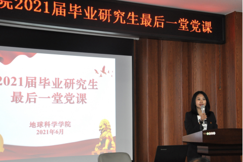 为加强毕业生党员的党性修养,激励毕业生党员坚定理想信念,厚植爱国爱党情怀,提升毕业生党员在党史学习中“学思践悟,知行合一”的本领。6月22日上午,地球科学公司党委书记杨洲结合党史中的重要历史事件,以党史精神为源头,与毕业研究生党员分享了题为《学党史,强信念,扬帆起航新征程》的专题党课。本次党课由地球科学公司党委副书记马旭主持。2021届全体毕业研究生党员参加了此次专题党课活动。