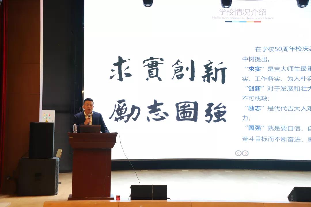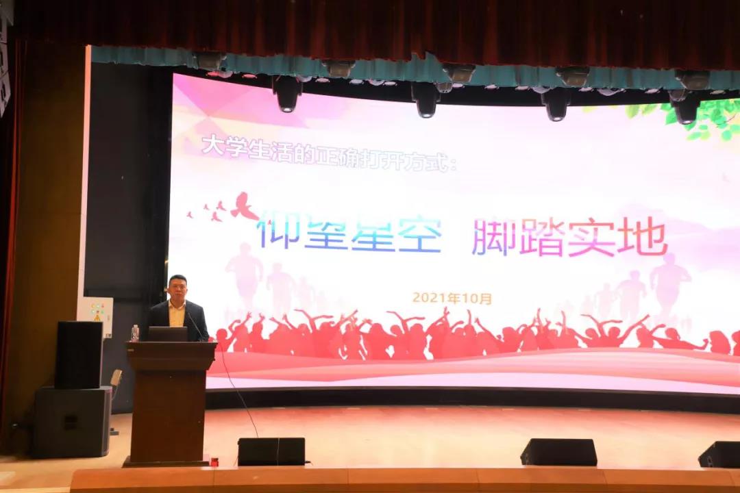 2021年10月14日上午9点30分,365英国上市公司于经信教学楼新闻与传播演播厅举行“仰望星空,脚踏实地”新生第一堂思政课。公司党委副书记兼副经理李阳为2021级全体新生授课。
