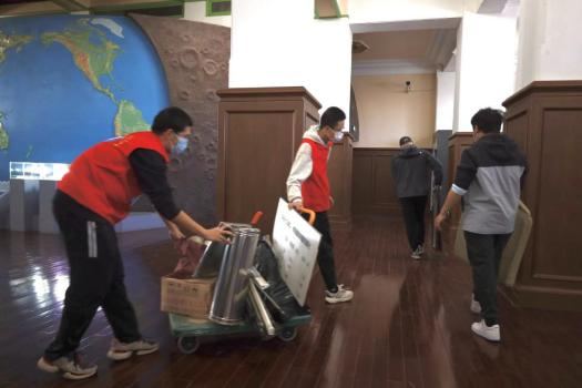 在此之后同学们开始有条不紊的进行劳动工作,他们充分展示出了合作意识与极高的工作效率。在擦拭展示柜和打扫馆内卫生的过程中,同学们耐心十足、一丝不苟,使得来自于亿万年前的藏品得到保护并焕发出更好的展态。与此同时,同学们也了解了地质宫的历史以及馆内工作的重要性、增强了同学们的社会责任感和劳动乐趣、培养了大家的劳动意识、助长了各位的劳动精神,让“劳动最崇高、奋斗正青春”的精神在我们这片流淌着华夏文明源流的土地上生长出更加繁茂的智慧之花。