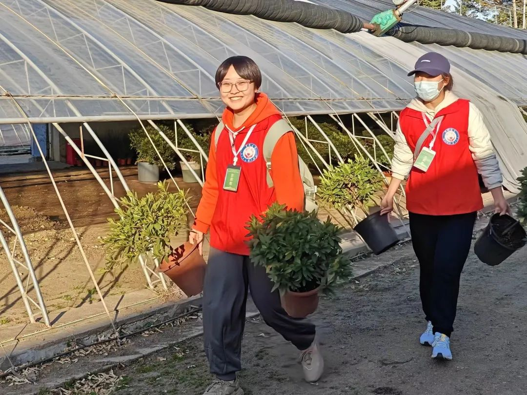 28日下午,志愿者纷纷赶到宋志平体育馆集合,并在组织者的带领下前往长春市百花园。进入百花园后,一排排大棚映入眼帘。进入大棚便看见一片生机勃勃的绿色海洋,它们亭亭玉立,诉说着大棚带给它们敢于与寒冬较量的勇气。