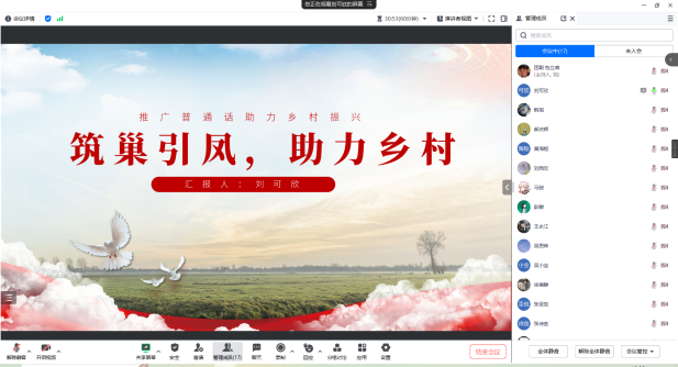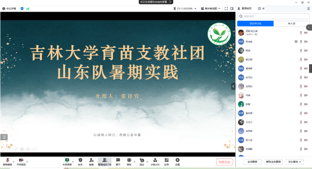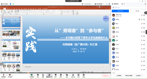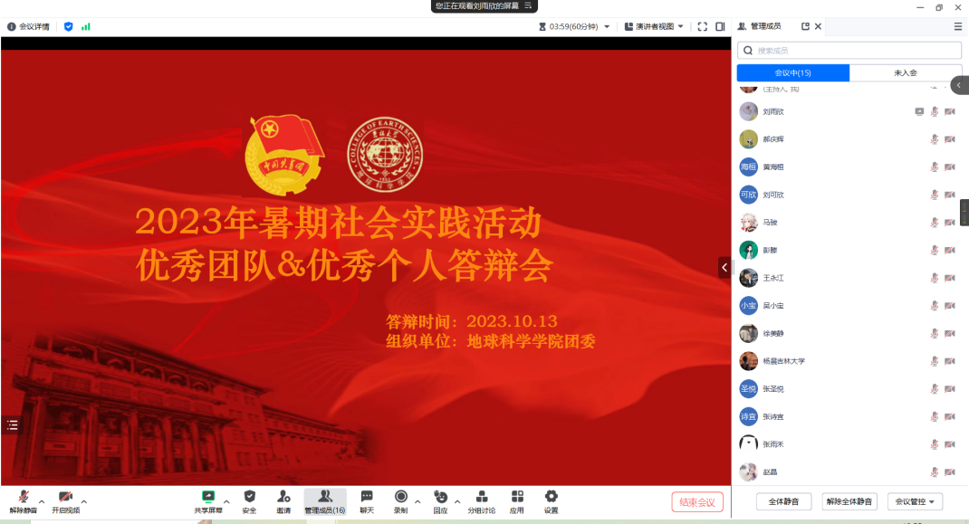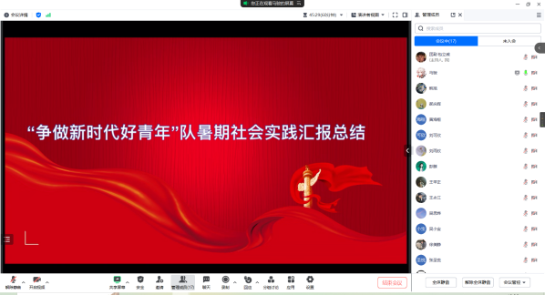 2023年10月14日晚上七点,2023年暑期社会实践评比大会顺利召开。本次会议采用线上腾讯会议的形式举行,出席会议的有365英国上市公司公司团委书记兼2021级辅导员韩旭老师、2022级辅导员赵晶老师、公司第二十三届员工组织主要负责人以及参评同学参会。