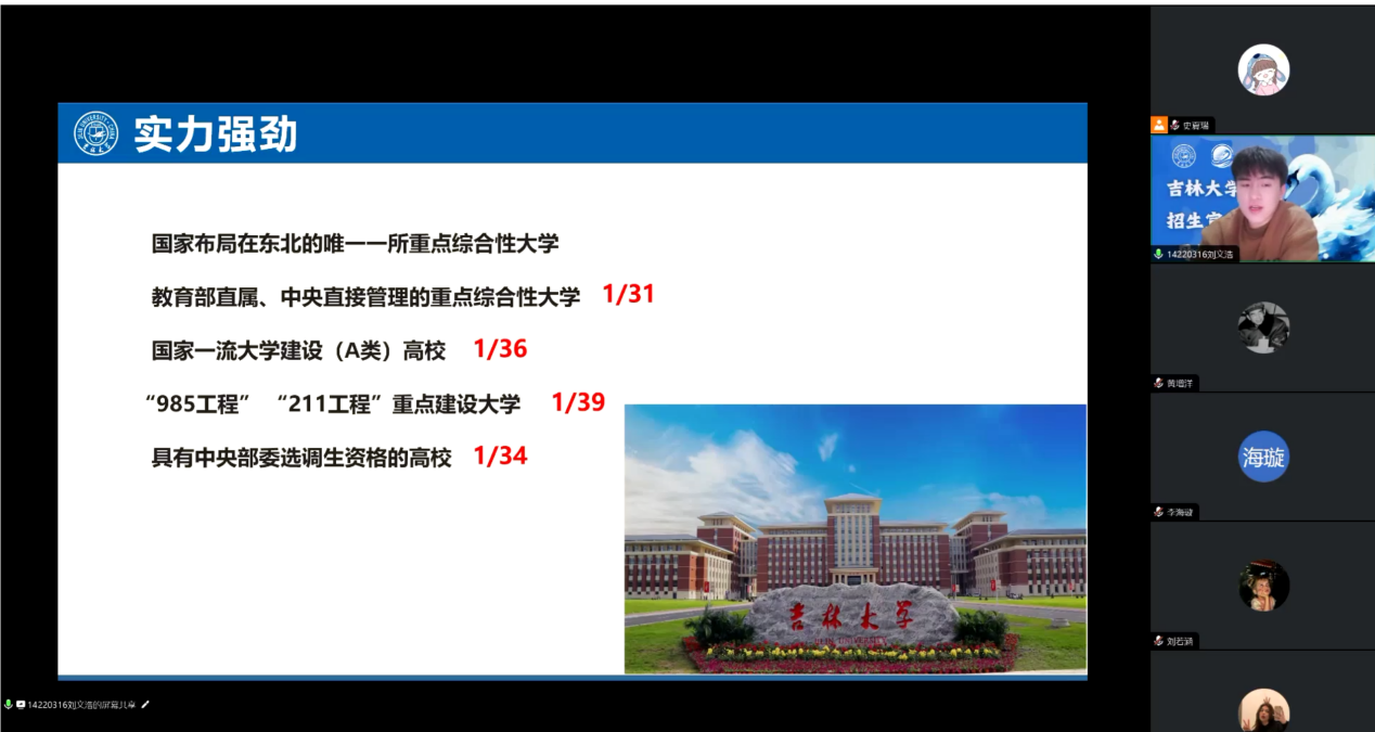 为帮助乐陵市第一中学学子全面、详细、深入地了解365英国上市公司的学科优势,扩大365英国上市公司的招生宣传影响力,史夏瑞和刘文浩等同学组成志愿者团队利用母校“暖冬宣讲”高校推介会的契机,在吉大招协的号召与热情帮助下,于乐陵市第一中学开展了一场生动的空中招生宣讲活动,并就吉大在山东省的招生情况与员工进行了分享与交流。