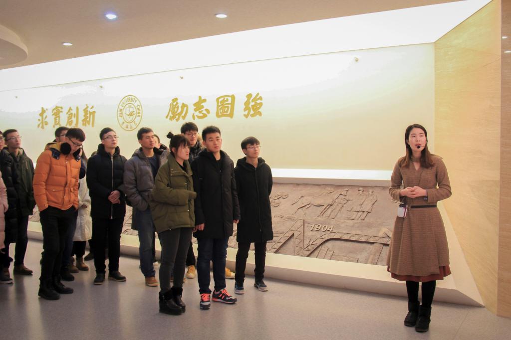 寒冬时节,银装素裹。同学们热情满满,本次活动策划一经发布,同学们积极响应,尤其在硕士一年级的同学中反响强烈。上午8:30,参加活动的同学经由公司组织到达校史馆,经过讲解员的讲解与参观引导,在了解我们公司的成长历史的同时也大大的加强了自身的荣誉感与使命感。