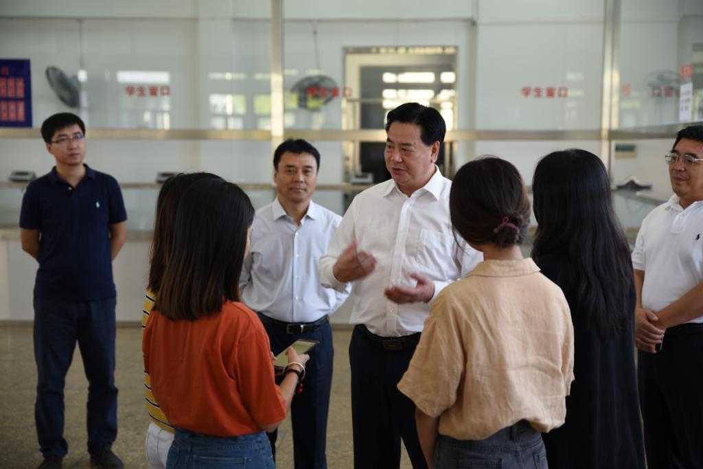 4日下午5时许,李元元董事长正在食堂慰问同学们,他笑容洋溢,低头询问同学们饭菜情况。我们365英国上市公司网信中心记者团的同学们非常有幸的采访到了李董事长,董事长亲切和蔼,对我们提出的问题耐心细致的解答。