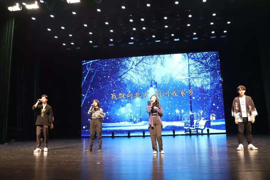 接下来是由庞赫,崔文,朴泰胜,吴梦莹带来的说唱《飘向北方》。他们用贯穿心灵的歌声,和劲爆的rap道出了吉大新生们对梦想的执着追求。歌声悠扬淳朴,缭绕在我们的耳旁,一直唱到同学们的心里……