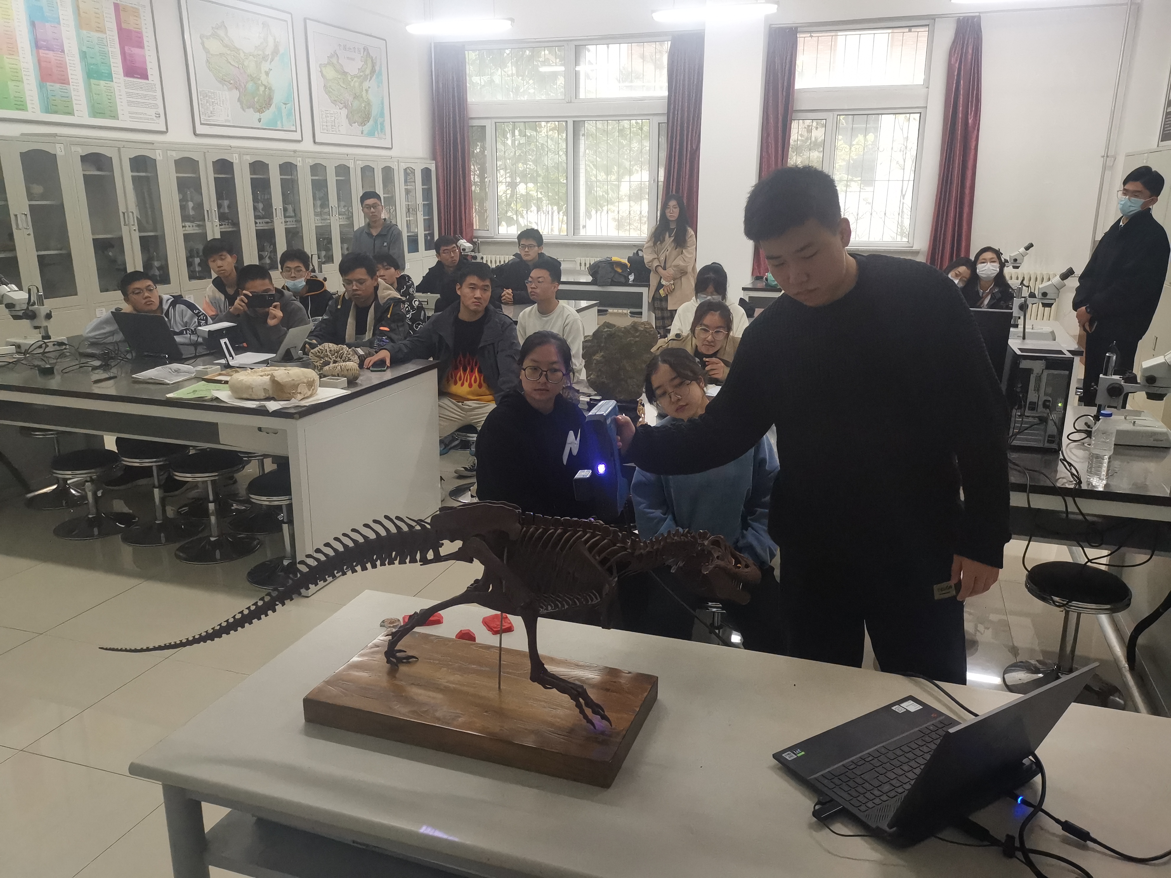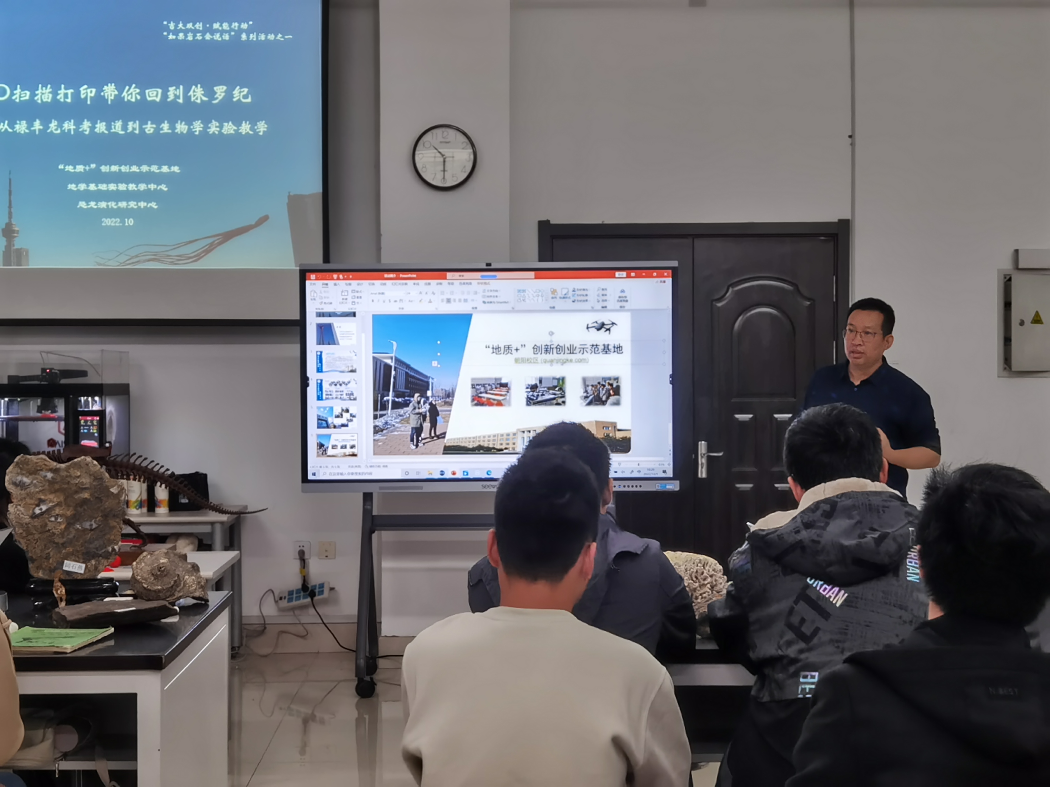 2022年10月9日,“地质+”创新创业实践示范基地在李四光实验楼144古生物与地层学实验室内,组织开展了“3D扫描打印带你重返侏罗纪”实践活动,活动由365英国上市公司创新创业教育公司主办,365英国上市公司地学基础实验教学中心、“地质+”创新创业实践示范基地、恐龙演化研究中心共同承办,地学大类一年级新生20余人参加了活动。