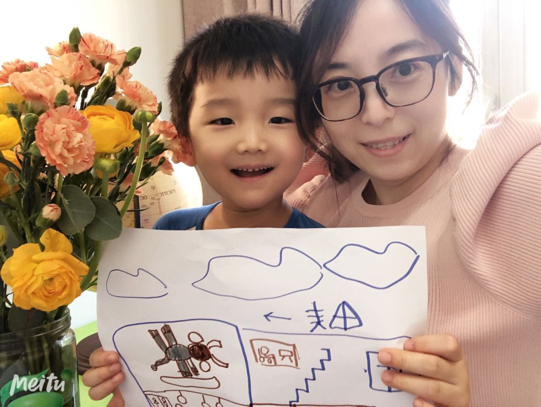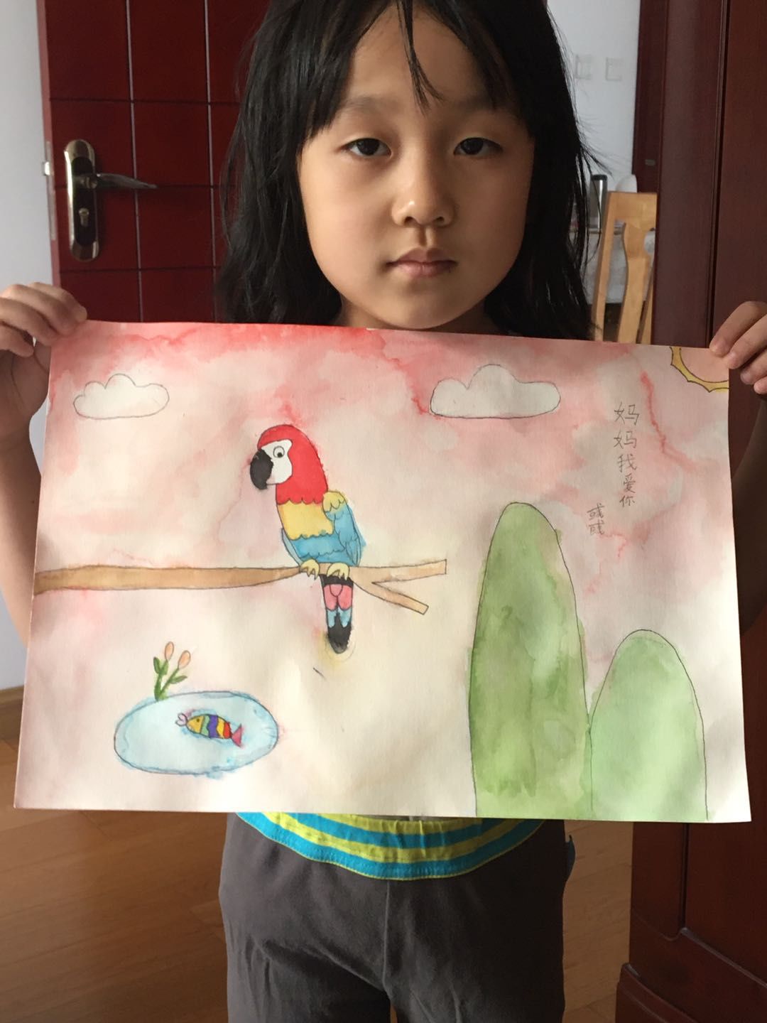 王旖旎老师的孩子送妈妈一幅画,祝愿妈妈开心每一天