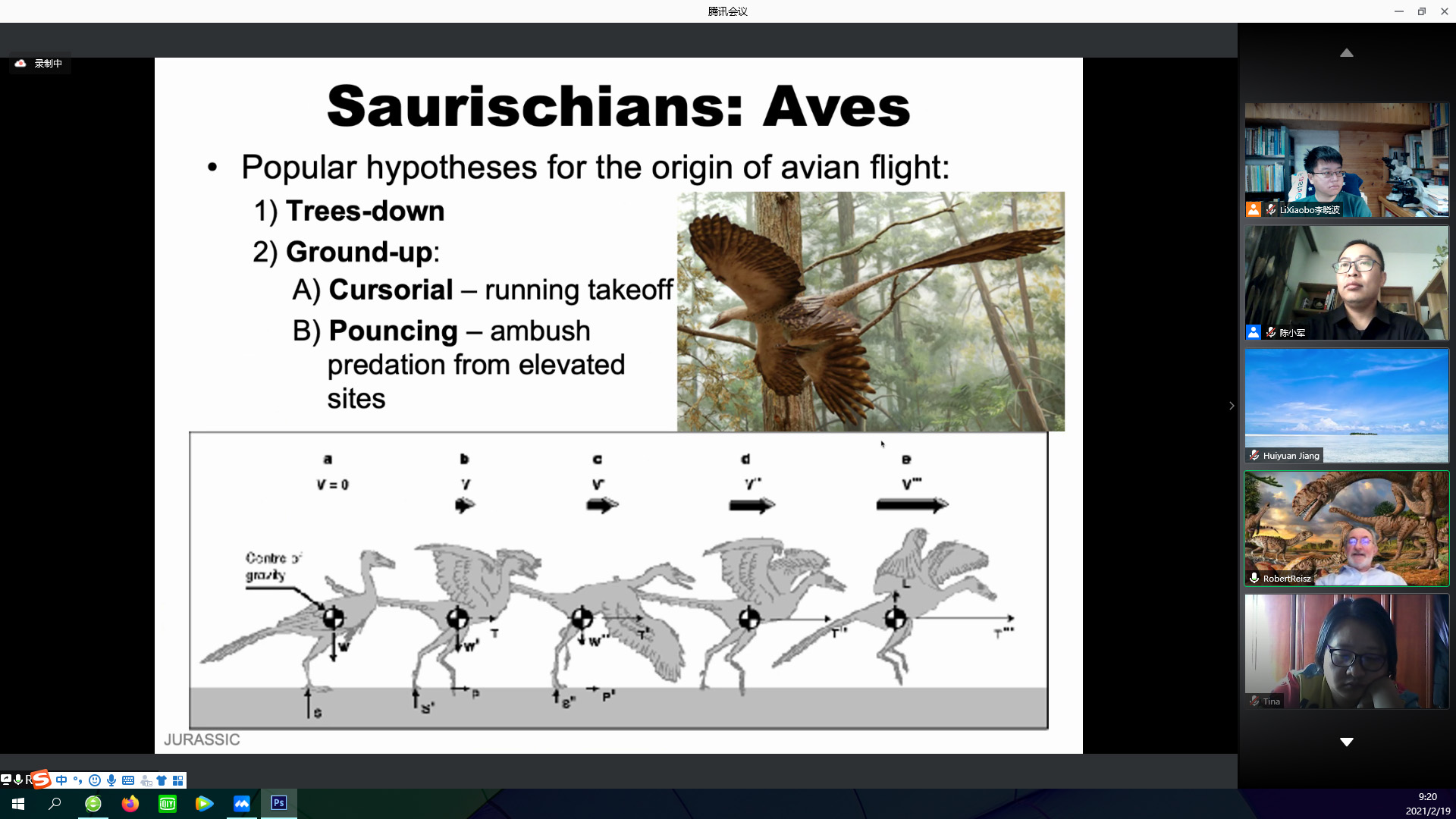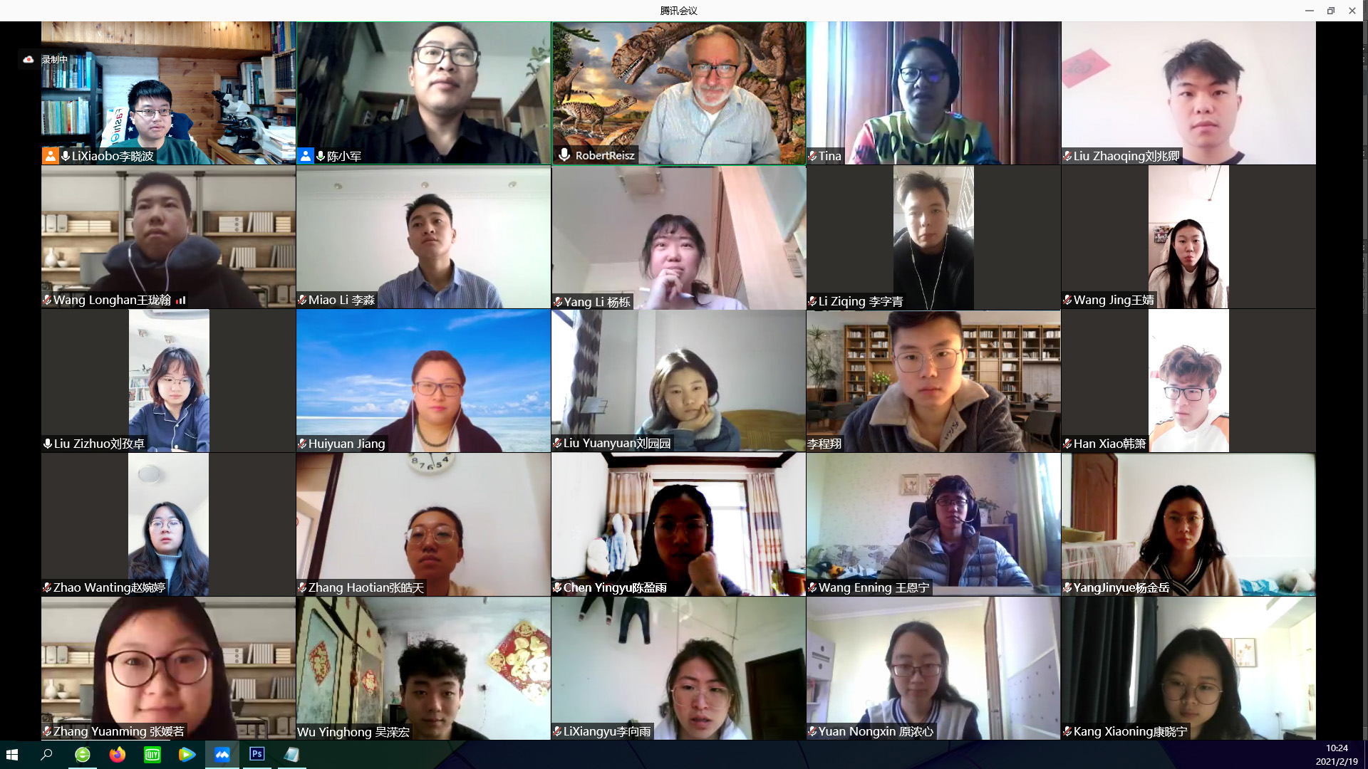 赖兹院士本次讲授课程的题目为《脊椎动物演化的主要特征》,课程时长1周,共计10次在线学习课堂,内容包括古脊椎动物学的基本理论和方法,以及从奥陶纪至白垩纪脊椎动物不同演化阶段的主要特征。开课期间,在线课堂于北京时间每天上午8:45至11:00进行,此时正是多伦多的夜间,赖兹院士克服了时差的影响和白天的劳累,每次课均精心准备、认真讲解,为听课师生奉献了国际最前沿的研究成果和他对经典理论的解析。古生物学与地层学学科的青年老师们认真筹备和组织了这次课程,恐龙演化研究中心的工作人员也做了充分的连线辅助工作。课程期间也正值春节,师生们利用假期时间参与学习,把国际名师课堂当成了提升能力的“新年大礼包”,每天及时上线听课并积极参与讨论。课程的实施充分达到了预期效果,师生们不仅学到了前沿的专业知识,更重要的是拓展了自身的视野,了解了更多的先进研究理念,对于提升科研能力非常有帮助。